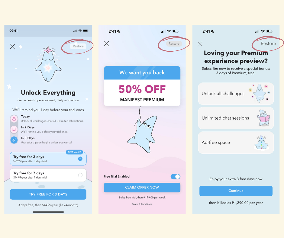 ProductProductHow to Restore Your App Purchase in ManifestPost by: Star CervantesStar CervantesDon’t Want to Miss an Update?Stay connected and discover the magic of Manifesting! Enter your email below to ensure you never miss out on the wonders we’re building.Thank you! Your submission has been received!Oops! Something went wrong while submitting the form.Recent articlesView allBest App For Mental Health Journaling Via Voice RecordingGuides|Star Cervantes|March 10, 2026Best App For Mental Health Journaling Via Voice RecordingBest App For Mental Health Journaling Via Voice RecordingGuides|Star Cervantes|March 10, 2026Guides|Star Cervantes|March 10, 2026Manifest: Personalized Positive Affirmation AppProduct|Star Cervantes|March 10, 2026Manifest: Personalized Positive Affirmation AppManifest: Personalized Positive Affirmation AppProduct|Star Cervantes|March 10, 2026Product|Star Cervantes|March 10, 2026How to Restore Your App Purchase in ManifestProduct|Star Cervantes|March 5, 2026How to Restore Your App Purchase in ManifestHow to Restore Your App Purchase in ManifestProduct|Star Cervantes|March 5, 2026Product|Star Cervantes|March 5, 2026Relationship Anxiety App Tools to Manage Attachment Anxiety RelationshipsProduct|Sydnee Paige|March 4, 2026Relationship Anxiety App Tools to Manage Attachment Anxiety RelationshipsRelationship Anxiety App Tools to Manage Attachment Anxiety RelationshipsProduct|Sydnee Paige|March 4, 2026Product|Sydnee Paige|March 4, 2026
